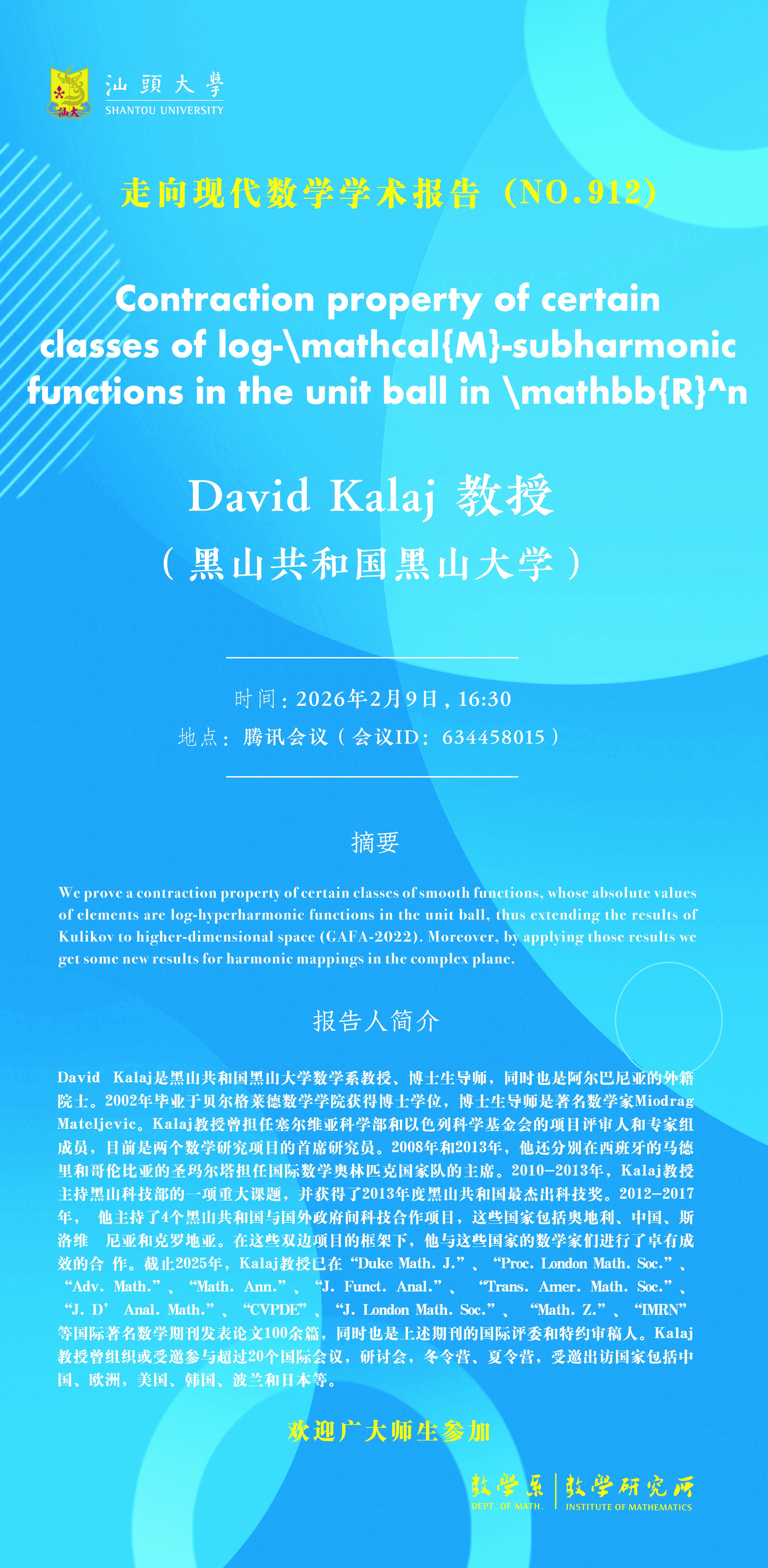 走向现代数学学术报告 - David Kalaj教授(No. 912)